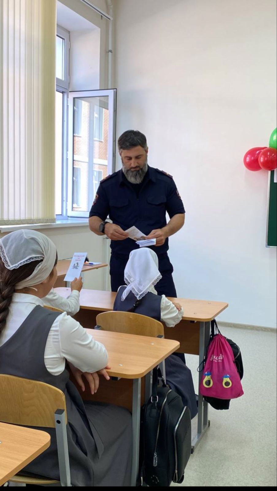 17.09.2024г. В МБОУ «СОШ с.п.Бено-юрт им. А.Г.Завгаева» инспектор ГИБДД провел беседу с обучающимися на правила дорожного движения.