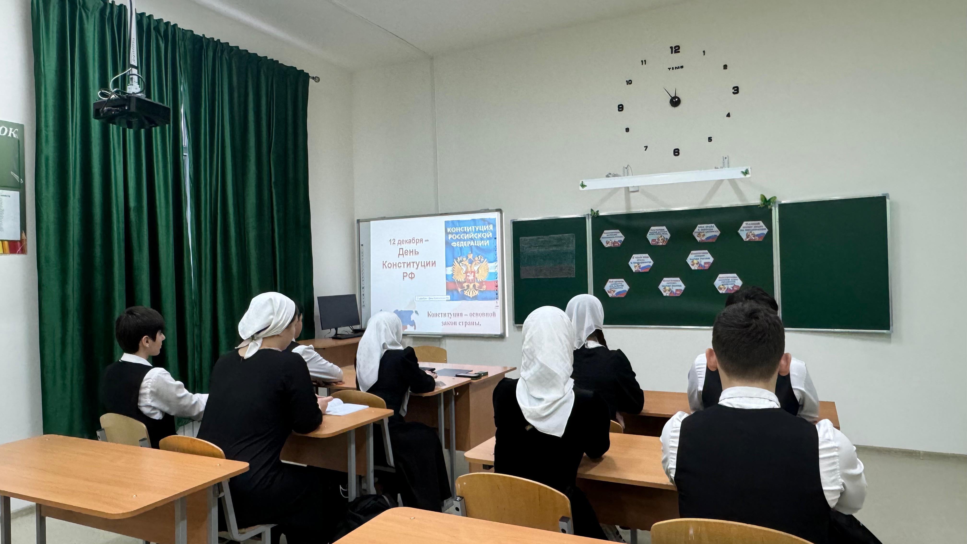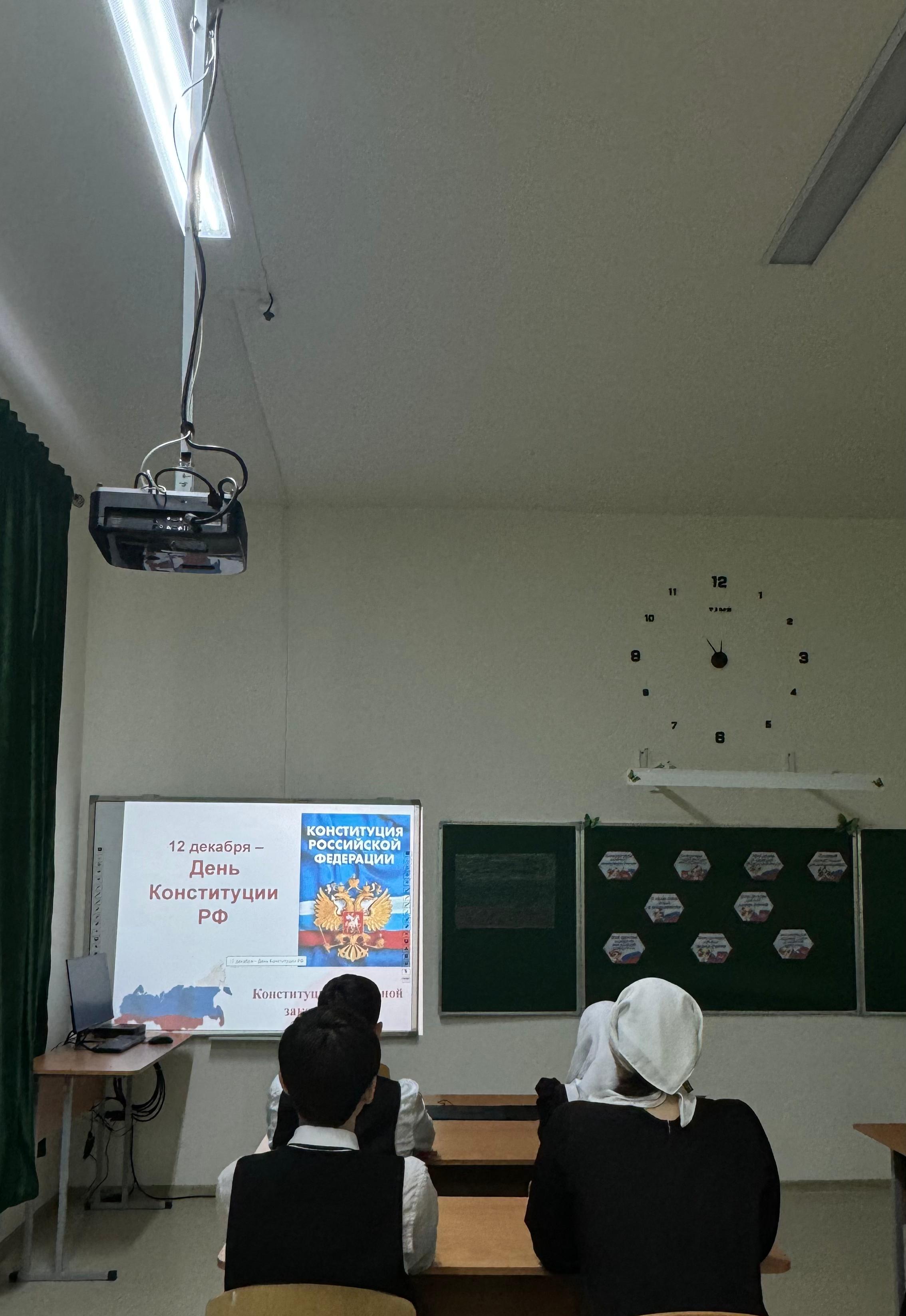 Сегодня 12 декабря в 9 «А» классе был проведен классный час,на тему: «День Конституции РФ»,с целью убедить учащихся в том, что истинный патриот своего Отечества должен знать историю своего народа, испытывать чувство гордости за своих соотечественников, должен готовиться к защите Отечества.